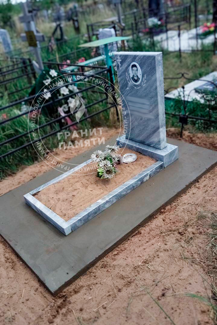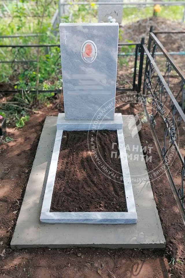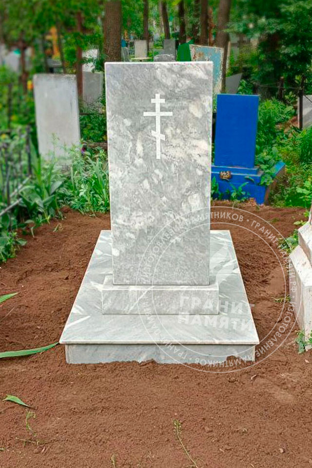 Мраморный памятник изготавливается из натурального мрамора Полевского месторождения — одного из самых известных и качественных российских мраморов. Этот благородный камень светло-серого цвета с характерным природным рисунком, обладает уникальной текстурой, которая подчеркивает торжественность и элегантность любого мемориального сооружения.